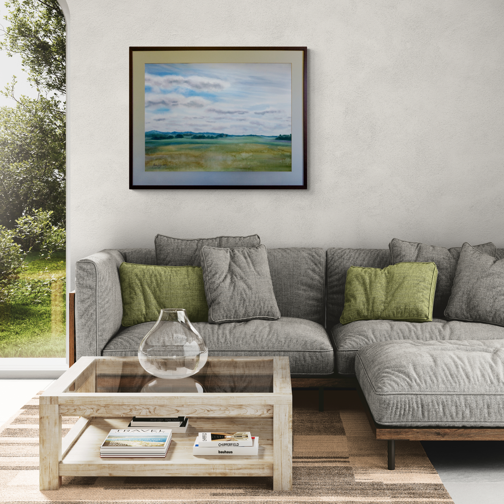 "Kodukandi väljad" on akvarellmaal Lõuna-Eesti kaunist kuppelmaastikust, inspireeritud vaatest, mida näen iga päev oma koduväravast.