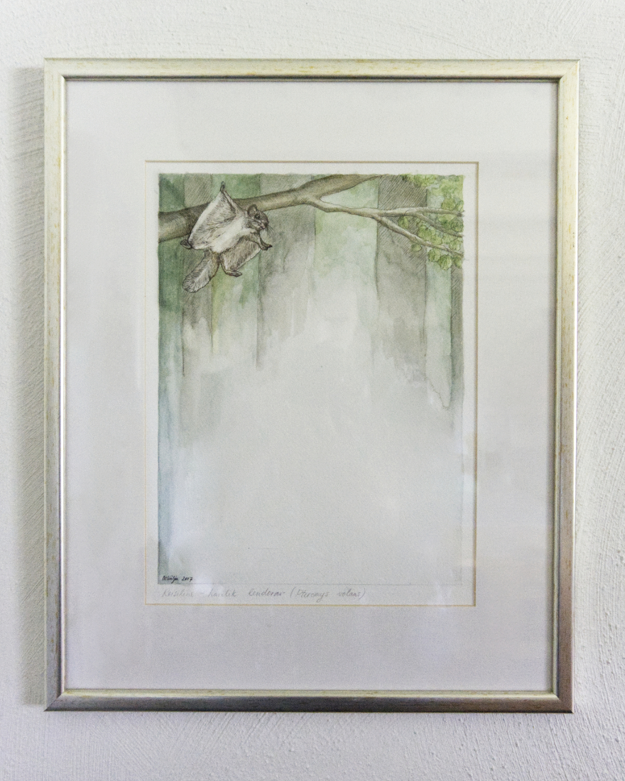 Tindipliiatsi joonistus akvarelliga, 31*38 cm (koos raamiga). 2017.