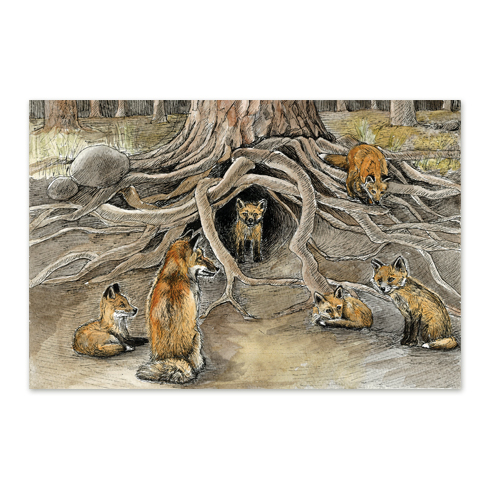 Postkaardi "Koduõuel mängimas" loomiseks on kasutatud Maria Välja samanimelist tindijoonistusega akvarellmaali.