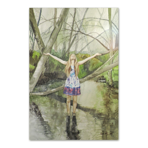 Postkaart "Vihmalausuja" on loodud maaliseeria "Metsarahvas" põhjal.
