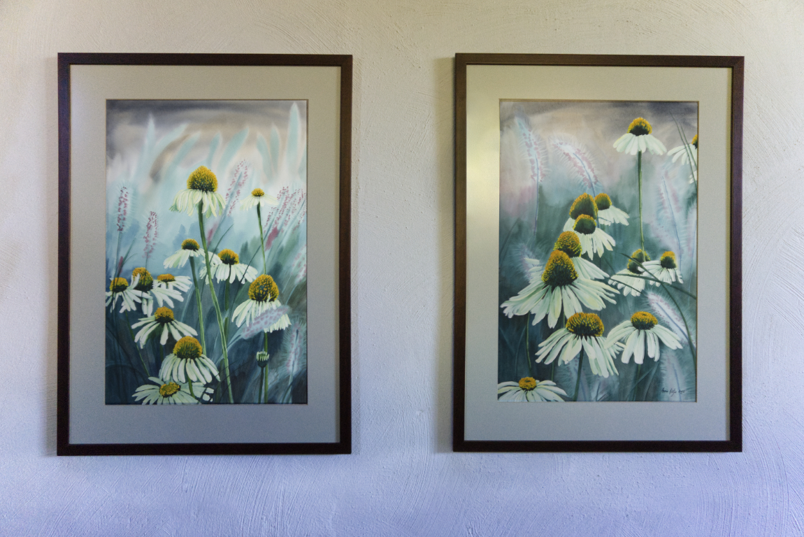 Kaheosaline akvarellmaal, ühe osa mõõt 36,5x55,5 cm (koos raamiga 52,5x72 cm). 2022.