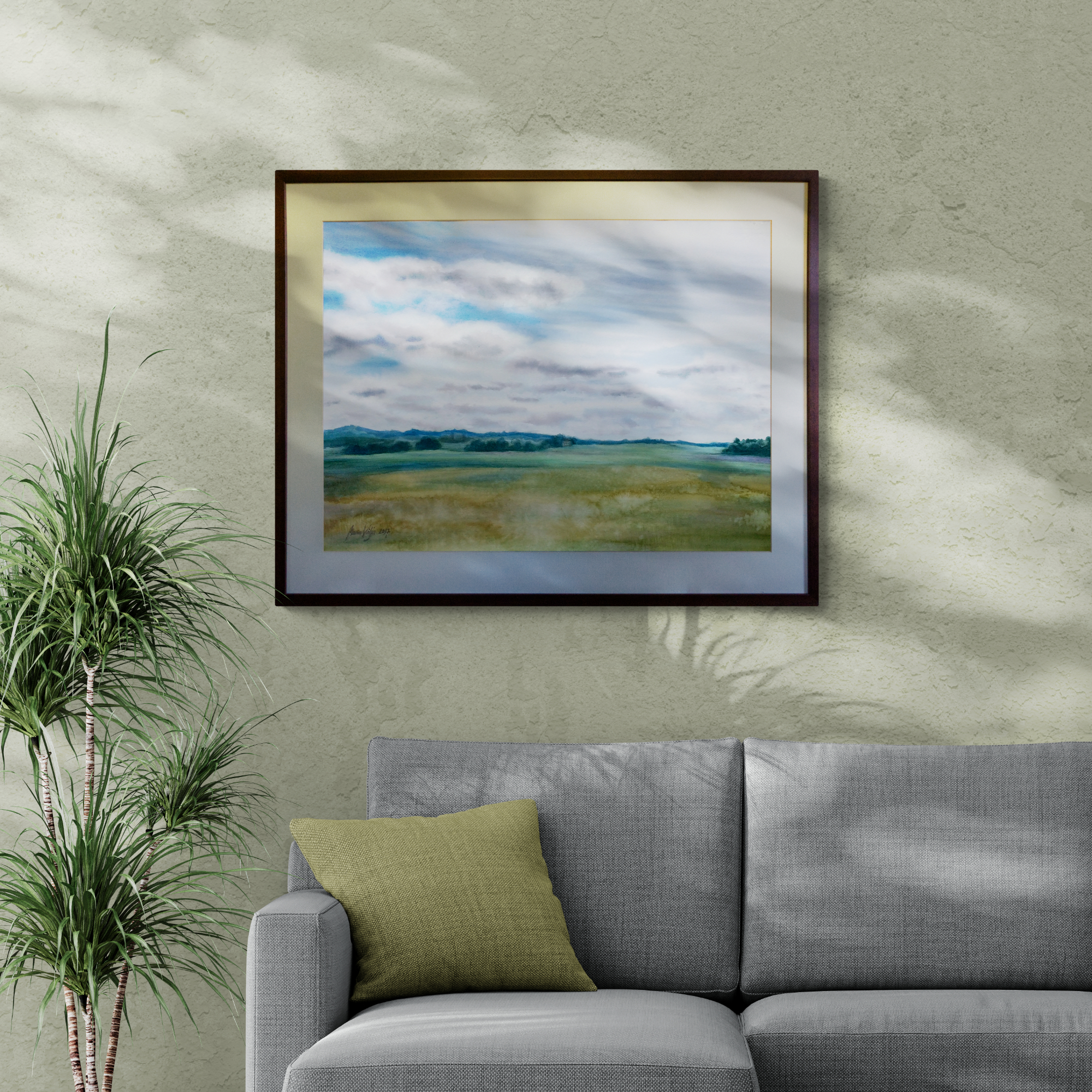 "Kodukandi väljad" on akvarellmaal Lõuna-Eesti kaunist kuppelmaastikust, inspireeritud vaatest, mida näen iga päev oma koduväravast.