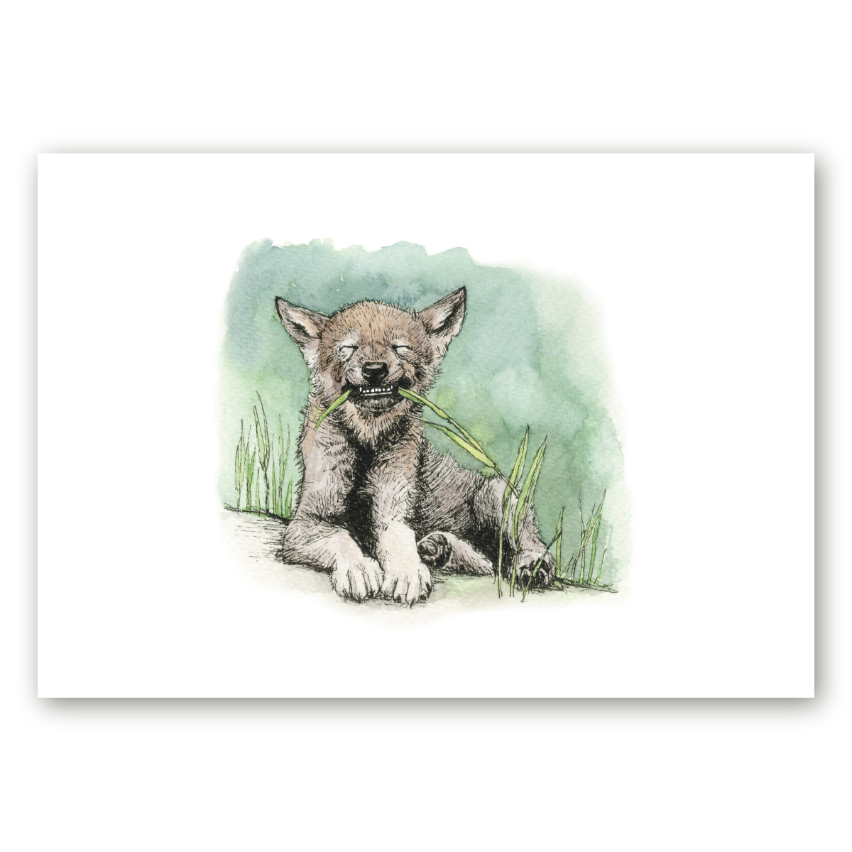 21x30 cm mõõdus poster Maria Välja illustratsiooni "Hambad! - Euraasia hunt (Canis lupus lupus)" põhjal, mis on algselt loodud beebiraamatu "Minu esimene raamat" jaoks.