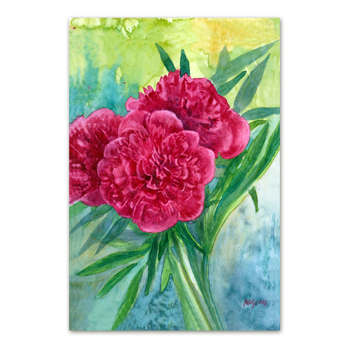 Postkaart "Pojengid" on loodud akvarellmaali "Suvenostalgia" põhjal.