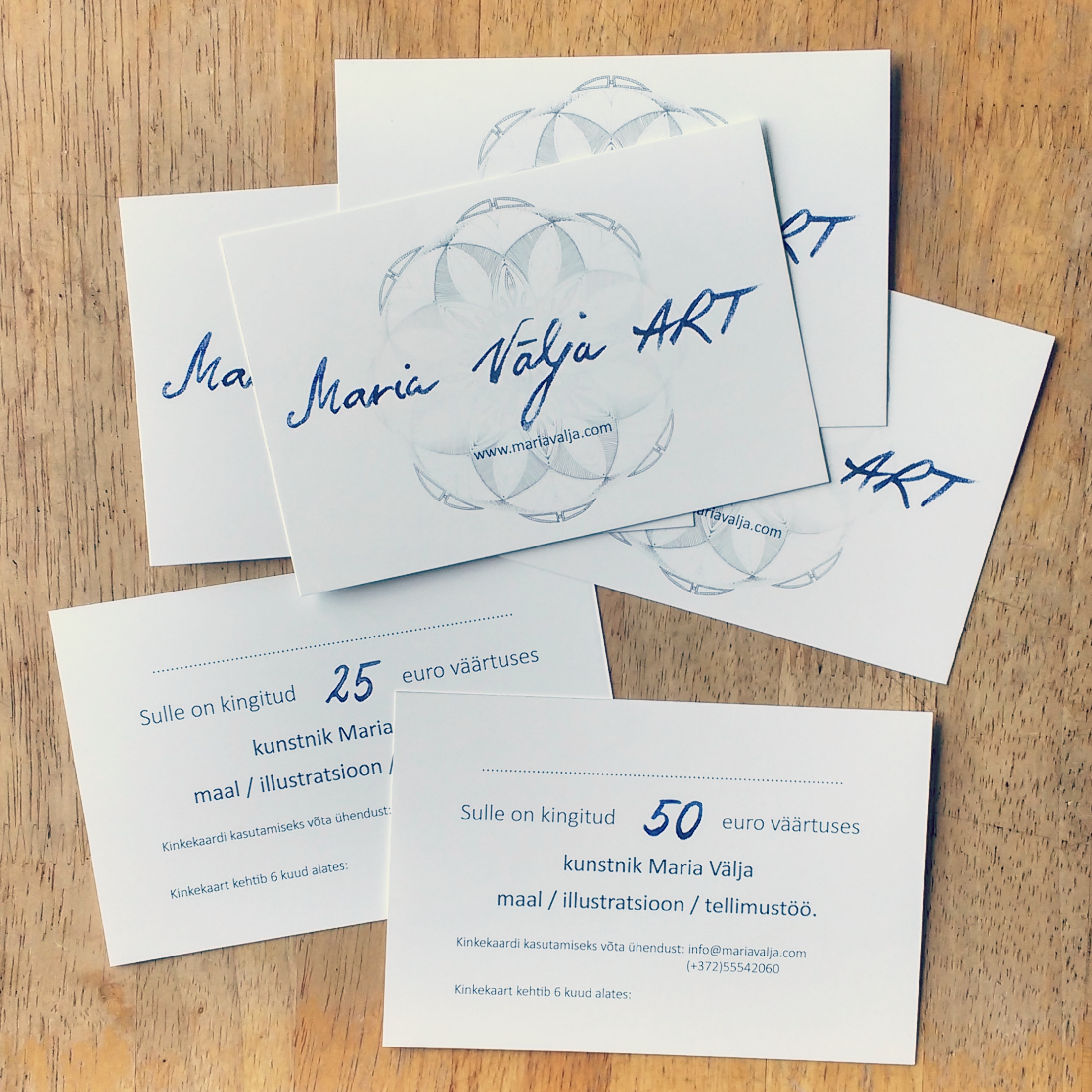 Kinkekaardi omanik saab selles väärtuses soetada Maria Välja loomingut e-poest või personaalselt kunstnikult. Kehtib ka tellimustöödele.